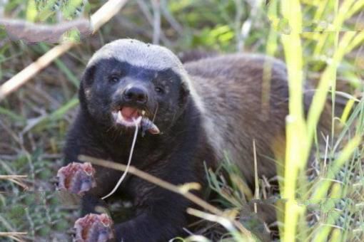 蜜獾是鼬科蜜獾属下唯一一种动物,厚密粗糙的皮毛可以抵御攻击,生性凶猛,既不怕蜂蜇,也不会怕蛇咬,因此它特别喜欢吃蜂蜜,另外也很喜欢吃蛇,一看到蛇他们就会主动进攻,眼镜王蛇、曼巴蛇这样的剧毒蛇类都是他们的食物。