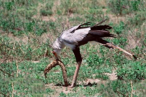 蛇鹫为隼形目蛇鹫属下的一种大型陆栖猛禽,仅有一种,无亚种分化,体型似鹤。蛇鹫是许多非洲毒蛇(如黑曼巴蛇)的天敌。