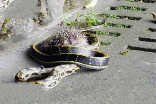 刺猬体肥矮、爪锐利、眼小、毛短,浑身布满短而密的刺,体背和体侧满布棘刺,头、尾和腹面被毛;嘴尖而长,尾短。看起来的一个萌团子,但是在野生环境中自由生长的刺猬也会捕食蛇来吃,然而蛇遇到满身尖刺的刺猬却毫无办法。