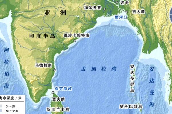 孟加拉湾这个隶属于印度洋,面积达217.2万平方公里的世界第一大海湾,是位于赤道北部水深在2000至4000米之间的世界最大的海湾,在这处海湾的沿岸分布有斯里兰卡、印度、孟加拉等七个国家。