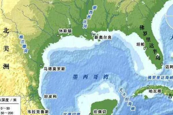 这片长1609千米,总面积达154.3万平方公里的大西洋海湾,是被密西西北河注入的,最深处达4023米的著名墨西哥湾洋流的起点,因其中富含丰富的石油、天然气和硫磺等矿产,周围分布有新奥尔良、休斯顿、坦皮科等重要港口。
