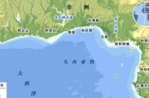 几内亚湾这处面积达153.3万平方千米,交汇了赤道和本初子午线的大西洋海湾,是有着利比里亚、科特迪瓦、加纳、尼日利亚、喀麦隆等雅安国家的海湾,而这片最深处达6363米的海湾,还出土有石油、鲶鱼、沙丁鱼和鲱鱼等特产。
